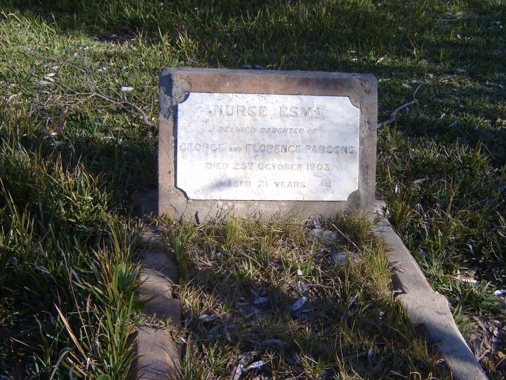 [left][size=2][font=Arial]Three weeks later, Esma contracted scarlet fever from a patient at the hospital and later pneumonia. She died on 25 October 1903 and was buried at the Coast Hospital Cemetery.[/font][/size][/left]